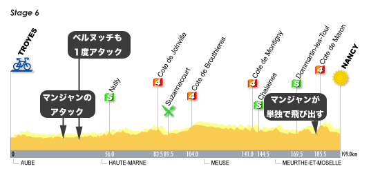 | 7/7(木) | 第6ステージ | トロイ(Troyes) 〜 ナンシー(Nancy) | 199km | ||||||||||||||||||||||||||||||