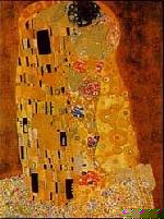 これが一番有名な「The Kiss」(接吻)(1907〜1908年) 色がちょっとちがうけど、本物はGOLD使いがすばらしいの・・・ 展示されるとすぐにオーストリア政府の買い上げとなったそうです 現在はウィーンのオーストリア美術館で見ることができます |